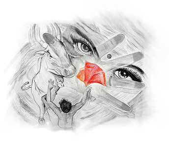 The priests kept chopping rhythmically at the flaming plantain tree. Soon a slaughtered chicken lying amidst the embers rose flapping wildly over them, its featherless burning wings.