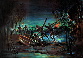 1. Along Pamba river there came a huge Kayamkulam armada spearheaded by their dreaded Iruttukuthi boats. Coming up behind was the larger group of utility boats - Veppu & Kettu-vallam. In those came Kayamkulam harvesters singing joyfully in anticipation of the plunder they were about to partake at the Kuttanadan paddies of Ambalapuzha.